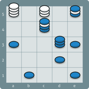 Blue to move and win; the score is 3-4 for Blue (win by 5 points). |